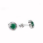 Silver 925 Sterling Silver Round Green Onyx Stone Studds Tops Zercon Stone Studded Tiny Zercon Micro Setting of Stones Platinum Polish Studd For Womens or Girls